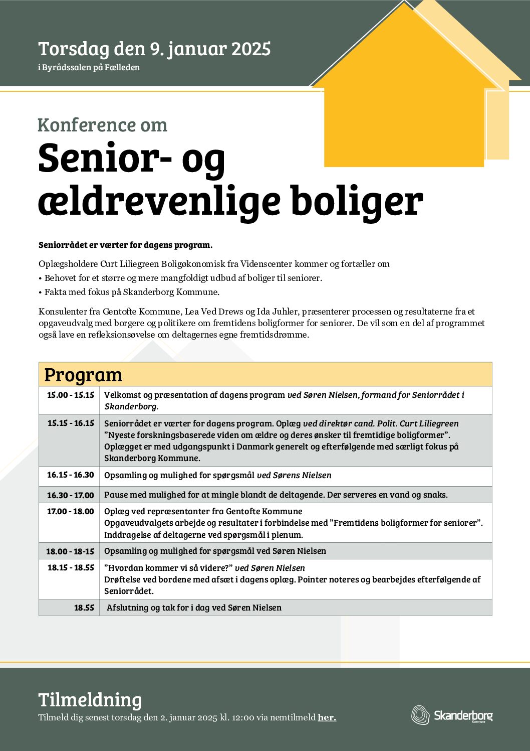 Konference om senior og ældrevenlige boliger 9. januar, 2025 kl. 15:00 til 18:55 · Arrangør: Seniorrådet Skanderborg
